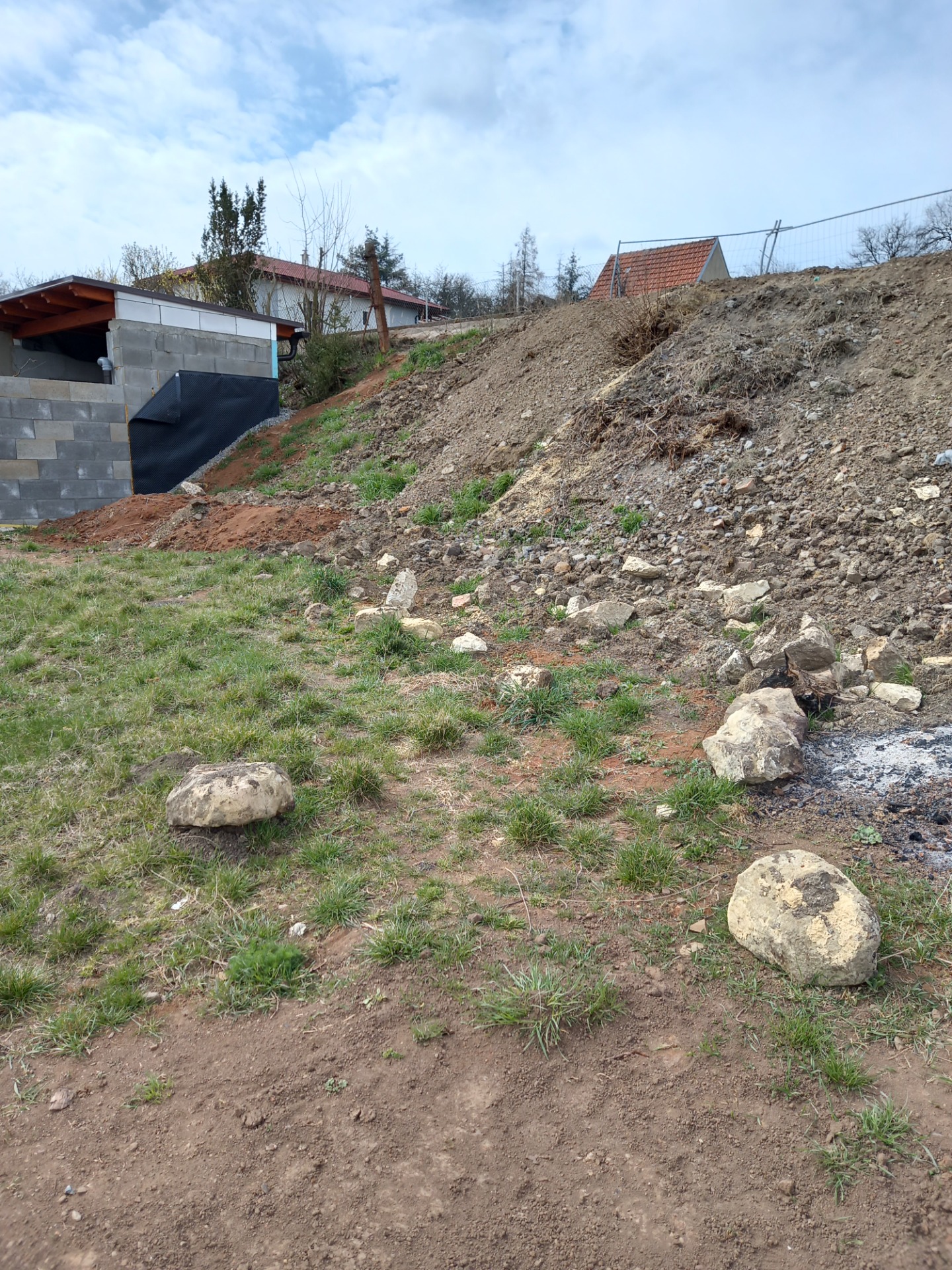 Věřte mi, že pro mě to byl opravdu dlouhý proces, než jsem si ke svahu na zahradě našla cestu a přijala ho. Jelikož jsem chtěla mít chatu s pergolou orientovanou na jih, musela jsem svah řešit jinak. Asi nikomu by se nechtělo z pergoly koukat na vysokou betonovou zeď. Navíc, vzhledem k tomu, jak malá je zahrada a že tam chceme mít chatku s pergolou, ohniště, pár ovocných stromů, kousek trávníku a já tam chci mít i nějakou okrasnou zahrádku, bylo jasné, že se musí svah zapojit a stát se obyvatelnou součástí zahrady.